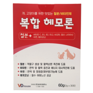 [정품] 복합 헤모론 30포 강아지 고양이 철분제 철분 빈혈 영양제 비타민 보충제, 1개