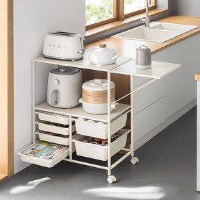 무베즈 확장형 이동식 전자레인지 선반 수납장 서랍포함, 3단, 화이트