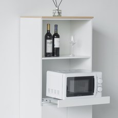 가로 600mm 폭에 화이트 색상으로 깔끔한 주방 분위기를 만들고 멀티 수납 공간을 통해 전자레인지와 식기, 조리도구 등을 효율적으로 정리할 수 있으며 방문 설치로 바로 사용할 수 있는 주방 수납장이다.