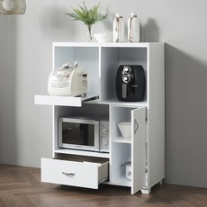 가로 1200mm 넓이로 전자레인지와 밥솥 등 다양한 주방가전을 한곳에 정리할 수 있고 3단 구조로 효율적인 수납이 가능하며 화이트 색상으로 깔끔한 주방 분위기를 연출해 주고 방문 설치 서비스로 바로 사용할 수 있는 다용도 주방수납장이다.
