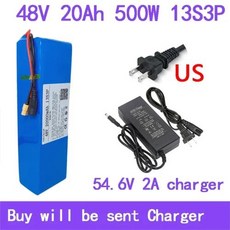 18650 리튬 이온 배터리 팩 BMS 및 충전기 포함 54.6V 전기 자전거 스쿠터용 48V 20000mAh 500w 13S3P XT60 20Ah 신제품, US plug, 1개