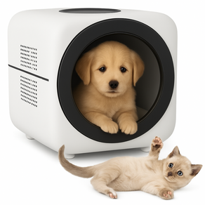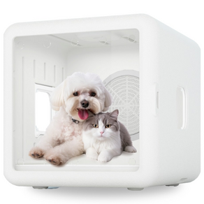 - 반려동물의 목욕 후 털을 빠르고 효율적으로 건조할 수 있는 드라이룸으로, 내부 공간이 편안하게 설계되어 있고 한국 환경에 맞춘 온도 조절 및 저소음 기능으로 스트레스를 줄여 사용자가 편리하게 관리할 수 있는 제품이다.